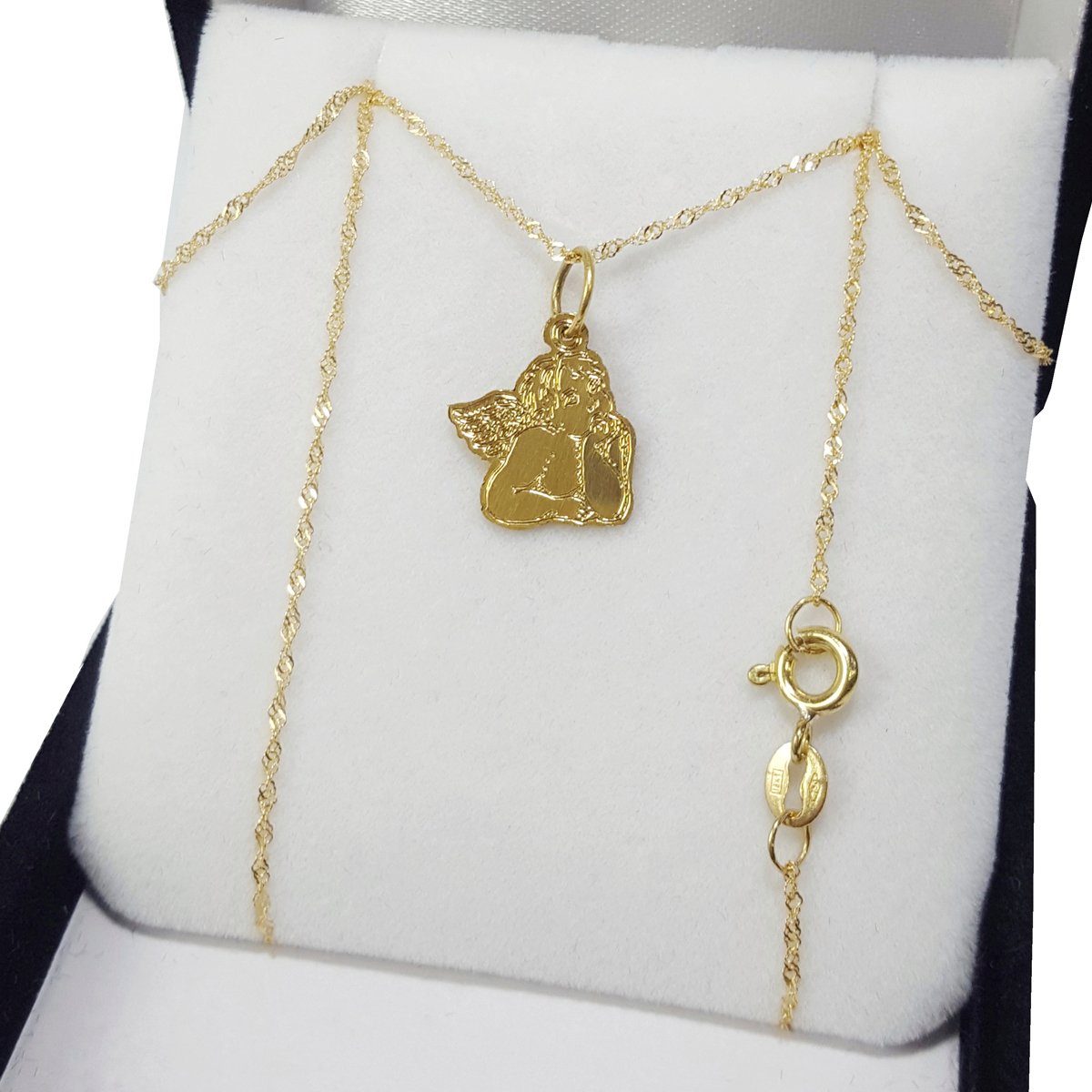 Conjunto Oro 18k Cadena Singapur Y Dije Ángel Rafael