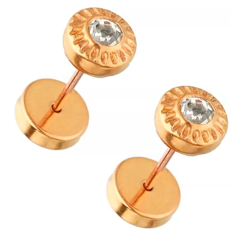 Par Aritos Abridores Oro 18k Piedra Engarzada C/estuche
