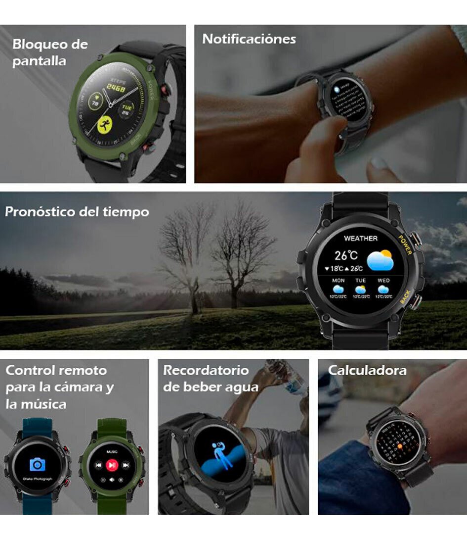 RELOJ SMART, CON BLUETOOTH,. CAJA DE PLASTICO Y MALLA DE SILICONA. RESISTENTE A AGUA Y POLVO IP67.